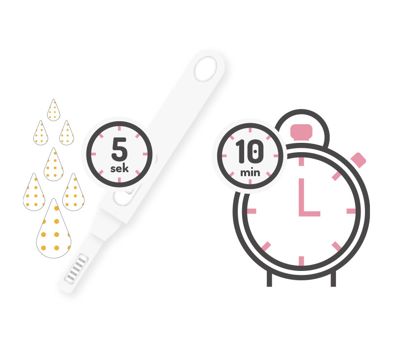 Tämän testin vahvuus on siinä, ettei sinun tarvitse kerätä virtsanäytettä erilliseen astiaan. Tuloksen saamiseksi sinun tarvitsee vain virtsata testipuikkoon muutaman sekunnin ajan. Tulos on luettavissa muutaman sekunnin päästä. Halutessa myös virtsanäytteen kerääminen astiaan onnistuu hyvin. Kerää virtsa astiaan ja kasta puikkoa astiassa muutaman sekunnin ajan. Tulos näkyy n. 10 minuutin kuluessa.