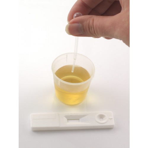 Tämä raskaustesti sisältää virtsanäytteeseen reagoivan kasetin, joka voi varmentaa raskauden jopa 7 päivää hedelmöittymisen jälkeen. Kerää virtsa tuotepakkauksessa mukana tulevaan astiaan ja käytä pakkauksen sisältämää pipettiä pudottaaksesi oikean määrän virtsanäytettä kasettiin. Tämä raskaustestimuoto on suosittu ja sitä käytetään terveydenhoitoalalla.